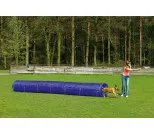 Agility tunneli Large. Koko 525 x 60 x 60 cm. Väri sininen. Oma kantopussi. Pakkaus sisältää kaksi osaa, pussin jossa on itse tunneli ja toisen pussin jossa on 14 kpl tukikeppejä (7 tunnelin kummallekin puolelle) sekä 4 kpl kiinnitystikkuja (pussin no -51).