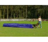 Agility tunneli pussilla (umpitunneli). Koko 500 x 60 x 60 cm. Väri sininen. Oma kantopussi. Pakkaus sisältää kaksi osaa, pussin jossa on itse tunneli ja toisen pussin jossa on 4 kpl tukikeppejä (2 tunnelin kummallekin puolelle) sekä 4 kpl kiinnitystikkuja (pussin no -51).