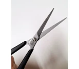 Sakset suorat pituus 15,5 cm. Terän pituus 6,5 cm. Toinen terä on microhammastettu.