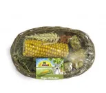 Consists of untreated willow (fully edible) and is filled with tasty wholemeal biscuits, a corn cob and ears of wheat served on rich in raw fibre mountain meadow hay.