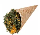 Crispy wafer cone filled with a tasty herb blossom mixture. With a support for safe attachment ensuring long-lasting tasty fun!