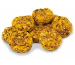 Savouring "American style" - Crispy baked wholemeal cookies with nourishing ingredients (with carrots and linseed) and a lot of extra animal protein. Easy to portion and simply delicious!