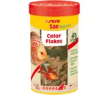 sera San ? väriruoka on valmistettu huolellisesti valmistetuista hiutaleista kaikille pintakerroksesta syöville kaloille. Värien muodostuminen on aikaansaatu luonnonmukaisella tavalla korkealaatuisilla ainesosilla kuten Haematococcus-levästä. Hiutaleet säilyttävät muotonsa ja kelluvat pitkään, ne syödään täysin evätkä ne saastuta akvaarion vettä.