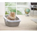 This open litter box is also economical and durable. The sieve ensures that the waste and the litter are easily separated from the clean litter. And the extra clips firmly secure the two trays and the sieve to the top part, ensuring that they don’t come apart while being carried. The design and the fresh colours give it a good look.