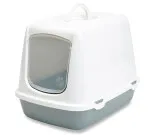 Perinteinen katettu kissavessa. Katossa irroitettava aktiivihiilisuodatin, joka pitää pahat hajut poissa. Ylä- ja alaosa helppo kiinnittää toisiinsa. Muovinen heiluriovi on irroitettava, jotta sen saa helposti pestyä.