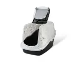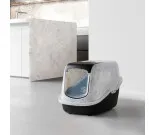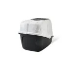 Modernisti muotoiltu katettu kissanvessa. Aukenee päältä, helppo ja nopea puhdistaa. Korotettu takaosa estää vuotoja. Kiinnitetty kahva, heiluriovi ja aktiivisuodatin.