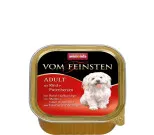 Animonda Vom Feinsten Adult sisältää vain huolella valittuja, laadukkaita lihoja. Tasapainoinen täysravinto ei sisällä viljaa eikä soijaa, joten se sopii myös allergisille ja herkille koirille. Märkäruoka sisältää kaiken mitä koirasi tarvitsee, ja laadukas eläinproteiini on helposti hyödynnettävässä muodossa. Ei sisällä keinotekoisia väri- tai säilöntäaineita.