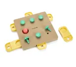 With the Beeztees Anubi Braingame your dogÂs physical and mental abilities are challenged in a playful way. Hiding a treat in the toy offers your dog a challenge to find it. Hide some dog biscuits or treats in some of the yellow slides. Then slide them into the wooden toy and put the knobs into the hole. Then the game can begin! Your dog has to remove the knobs before he or she can move the yellow slides to get to his or her reward. Regularly changing the place where you hide treats in the toy will ensure that the game remains challenging for your dog. - Made of wood Measurement: 32 x 32 x 5 cm