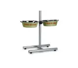 The Beeztees H-Stand Take It is a nice looking stand, complete with a food and a water bowl for your dog. This stand is adjustable in height, so you can choose just the right position for your best friend to eat. Its round frame makes the H-stand look slightly different from regular ones. And there are anti-slip caps on the underside, which ensure that it does not slide around and therefore protect your floor from scratches. The name Take It is written on both the food and water bowl.