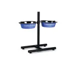 The Beeztees H-Stand Comfort Zone is a nice looking stand, complete with a food and a water bowl for your dog. This stand is adjustable in height, so you can choose just the right position for your best friend to eat. Its round frame makes the H-stand look slightly different from regular ones. And there are anti-slip caps on the underside, which ensure that it does not slide around and therefore protect your floor from scratches. Its name Comfort Zone is written on both the food and water bowl, and on the bottom of the frame.