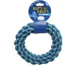 The Nuts for Knots Ring is bound to keep a dog busy for hours. The tightly twisted cotton rope ensures long lasting durability, and is great on dogs gums and teeth. The unique shape and design makes this the perfect chew toy for any pooch, hours of cotton picking fun! The design of the ring also makes it perfect for an interactive tug of war with all furry friends!