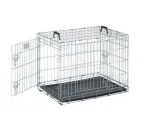 Sinkitty kokoontaitettava koiran metallihäkki. Helppo koota ja kasata. Ovi kahdella sivulla. Kantokahvat. Sisällä muovinen alusta jossa matalat reunat. Liukueste pohjassa. Koko 91 x 61 x 71 cm.