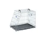 Sinkitty kokoontaitettava koiran metallihäkki. Automalli, yksi seinä on vino. Helppo koota ja kasata. Ovi molemmissa päädyissä. Kantokahvat. Sisällä muovinen alusta jossa matalat reunat. Liukueste pohjassa. Koko (leveys) 53 x (pituus) 76 x (korkeus) 61 cm.