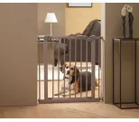 Erittäin vahva portti aikuisille koirille. Säädettävissä oviväliin 75 - 84 cm. Portin korkeus 75 cm. Pinnaväli 5,3 cm. koko 77 x 74 x 4,5 cm. Helppo asentaa, poraamista ei tarvita. Portti avattavissa molempiin suuntiin.