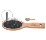 Perinteinen puuvarsinen piikkiharja, metallipiikit joissa metalliset pallot piikkien päässä. Pallot ja piikit ovat yhteinäisiä (palloja ei ole kiinnitetty erikseen, vaan ne muodostetaan valmistusprosessin kanssa samaan aikaan) ja siksi se ei revi turkkia. Pehmeä ja hellävarainen, joustavapohjainen. Varsi aitoa lakattua puuta. 7 riviä piikkejä.