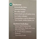 Tuotepakkaus sisältää yhden laitteen, jonka voi asettaa kiinnittämällä esim. ikkunan tai oven karmiin tai asettamalla vaikkapa pöydälle tai vastaavalle tasolle. Voit rajoittaa sillä yhden tai useamman koiran haukkumista sisätiloissa tietyllä alueella (maks. 8 metriä). Koiran haukkuessa laite havaitsee sisäisen mikrofoninsa avulla haukkumisäänen, jolloin laite aktivoituu automaattisesti. Vaihtoehtoisesti laitetta voi käyttää myös manuaalisesti.