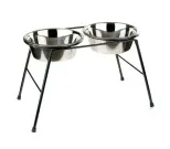 Ruokabaariteline kahdella ruostumattomalla teräskupilla. Kuppien koko 4,0 l. Telineen korkeus 370mm.