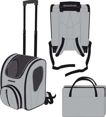 Kuljetuslaukku nailonista koirille ja kissoille. Kantolaukku, jota voidaan käyttää selkäreppuna, säädettävillä olkahihnoilla tai pyörällisenä laukkuna. Kuljetuslaukku, jossa on paljon tilaa koiralle tai kissalle ja kaksi säilytystaskua.