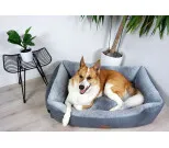 Tujoma Basic Ahoinen on laadukas ja tyylikäs sohvapeti. Sen mukava ja luonnollinen täyte on vaahtomuovia (polyuretaani), ja mahdollistaa koiralle parhaan levon ja palautumisen. Pohjassa on liukueste, jotta se pysyy paremmin paikallaan. Pedissä on käytetty kahta eri päällikangasta. Reunat ovat kauniin harmaata polysteriä, ja sisusta hyvin pehmeää kangasta jossa hauskoja luukuvioita vaaleanharmaalla pohjalla. Päällinen on helposti irroitettavissa pesua varten pedissä olevan vetoketjun avulla, ja sen voi pestä pesukoneessa.