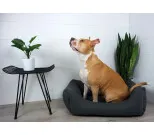 Tujoma Basic Ahoinen on laadukas ja tyylikäs sohvapeti. Sen mukava ja luonnollinen täyte on vaahtomuovia (polyuretaani), ja mahdollistaa koiralle parhaan levon ja palautumisen. Pohjassa on liukueste, jotta se pysyy paremmin paikallaan. Pedissä on käytetty kahta eri päällikangasta. Reunat ovat kauniin harmaata polysteriä, ja sisusta hyvin pehmeää kangasta jossa hauskoja luukuvioita vaaleanharmaalla pohjalla. Päällinen on helposti irroitettavissa pesua varten pedissä olevan vetoketjun avulla, ja sen voi pestä pesukoneessa.