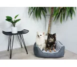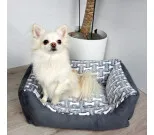 Tujoma Basic Ahoinen on laadukas ja tyylikäs sohvapeti. Sen mukava ja luonnollinen täyte on vaahtomuovia (polyuretaani), ja mahdollistaa koiralle parhaan levon ja palautumisen. Pohjassa on liukueste, jotta se pysyy paremmin paikallaan. Pedissä on käytetty kahta eri päällikangasta. Reunat ovat kauniin harmaata polysteriä, ja sisusta hyvin pehmeää kangasta jossa hauskoja luukuvioita vaaleanharmaalla pohjalla. Päällinen on helposti irroitettavissa pesua varten pedissä olevan vetoketjun avulla, ja sen voi pestä pesukoneessa.