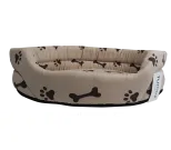 Tujoma Basic Lietsa on laadukas ja tyylikäs reunapeti. Sen mukava ja luonnollinen täyte on vaahtomuovia, joka mahdollistaa koiralle parhaan levon ja palautumisen. Reunallinen peti on tukeva ja korkeat reunat luovat lemmikillesi turvallisen tuntuisen lepopaikan. Pehmeä päällikangas on vettähylkivää materiaalia, joten mukavan tuntuinen peti on helppo pitää puhtaana. Beige kangas on kuvitettu hauskoilla, ruskeilla luilla. Mustassa pohjassa on liukueste, jotta peti pysyy paremmin paikallaan.