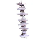 Aidosta puusta ja nahanpaloista tehty aktiivilelu linnuille, joka antaa paljon tekemistä ja iloa pitkään. Lelun voi kiinnittää häkin kattoon.