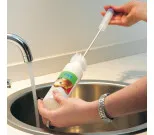 Savic pulloharja. Paksummalla yläosassa olevalla harjalla voit pestä pullon ja kapeammalla juomaputken.