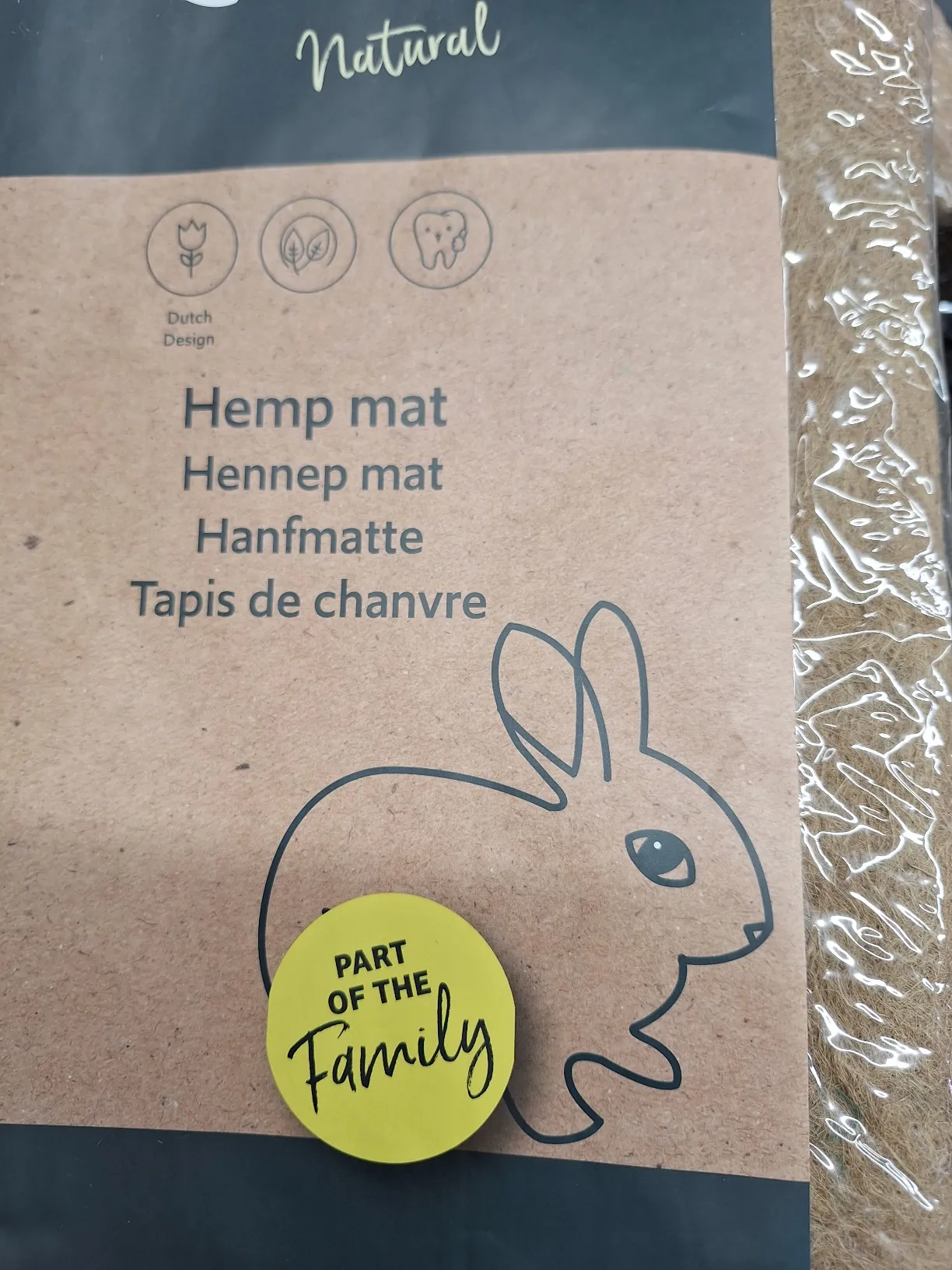 Hamppu matto pienjyrsijöiden häkkiin. Ilmastoystävällinen, hampun kasvatus ei rasita ilmastoa niin paljon kun muiden lajikkeiden viljelys. Pölytön ja varovasti puhdistettu hamppu on hygieeninen. Antaa puhtaan ja mielyttävän tunteen huoneeseen.