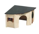 Ota huomioon, että kyseessä on nurkkamalli ja talo ei ole 4-kanttinen. Tämä pienentää mökkiä hieman, vaikka äärimitat ovat suuren mökin tasoa.Mitat noin. Korkeus 18cm, leveys 30cm, pituus 25cm
