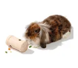 Jännittävää rulla, sisälle voi laittaa herkkuja. Ei teräviä reunoja. Rullaa varovasti edestakaisin, kun herkut putoavat pois helposti. Aitoa puuta.