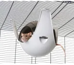 Muovinen talo voidaan laittaa häkin kattoon tai sitten lattialle. Koostuu kahdesta toisiinsa kiinnitettävästä osasta ja tehty korkealaatuisesta muovista, joten helppo puhdistaa. Sopii erityisen hyvin rotille, pienille freteille ja marsuille. Uniikki muotoilu, pieneläimet rakastavat tätä pesää.