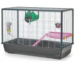 Häkki rotille ja freteille. Pinnaväli 9,5 mm. Koko 100 x 50 x 70 cm. Sisältää tarvikkeita, muovinen taso.